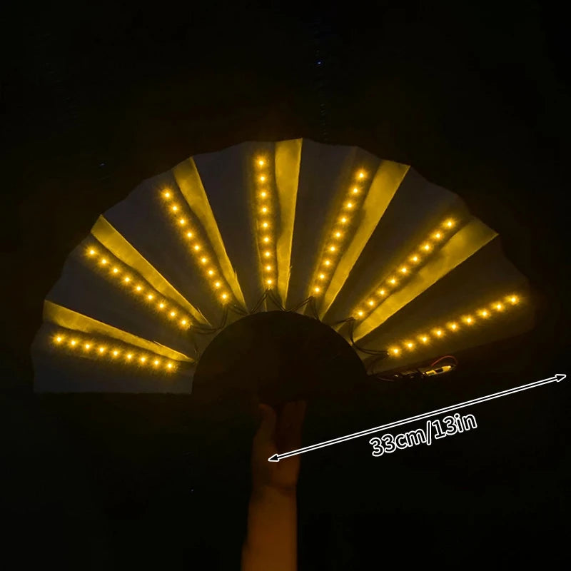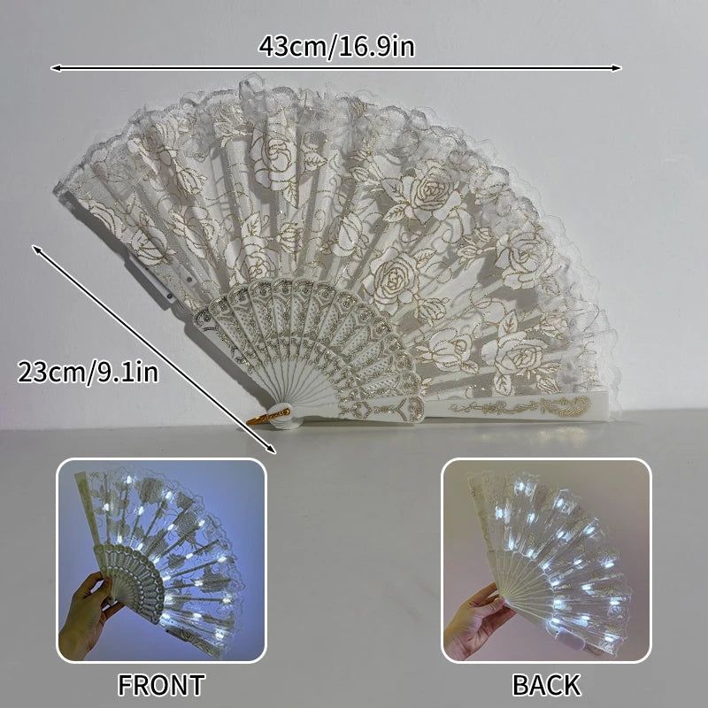 3. Shimmering Design: Designed to catch the eye, our light up fan boasts a glittering design that is sure to make you the star of the event